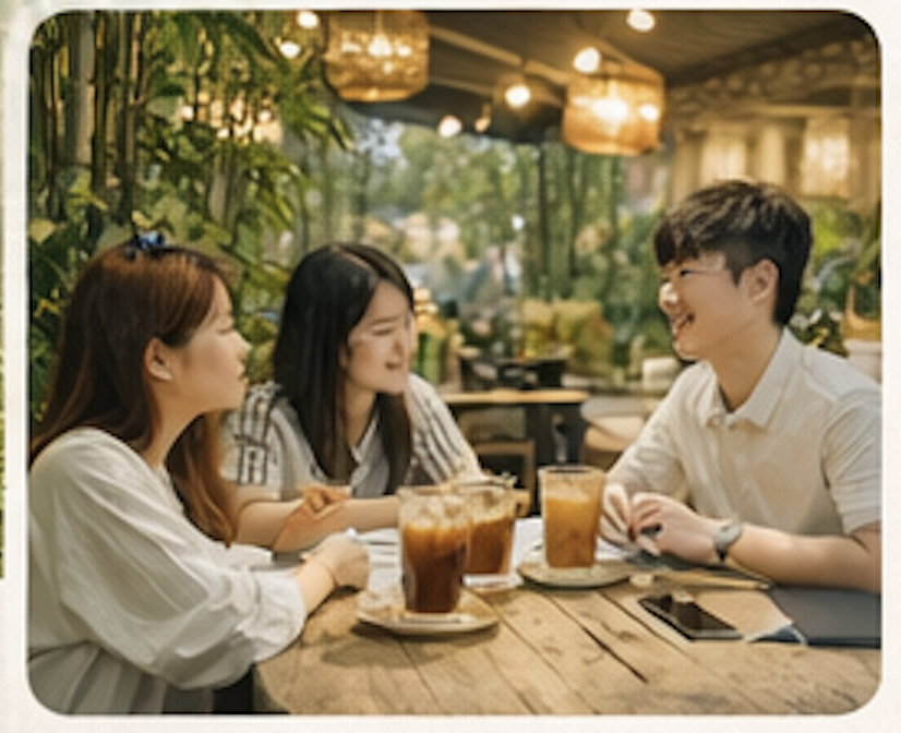 Bamboo là nơi dành cho những buổi họp nhóm nhẹ nhàng, nghỉ trưa chờ ca học chiều hay những buổi cuối tuần ngồi chậm lại. Không gian xanh, đủ yên và đủ dễ chịu để bạn ở lại lâu hơn.